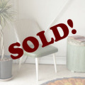 ホワイト&モスグリーンという、洗練カラーリングが魅力的なチェア。素朴ながらも英国らしい気品が感じられ、使い込まれた深い表情が素敵です。
