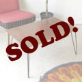 当時ならではのブラックヘアピンレッグがかっこいいローテーブル。今となってはこの手のタイプのレプリカもたくさん出ていますが、本物の質感を楽しめるのはヴィンテージならでは。