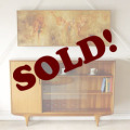 外部、内部共に目立つキズもなくきれいなビンテージ品です。ガラス扉もしっかりとしたホールド感がありながらも動きはスムーズでストレスなし。右のガラス扉だけ閉めたときにわずかに隙間が見られます。現状でもひどく目立つ感じではありませんが、実際に中に物を入れたら重量でもう少し改善されると思われます。