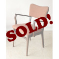 イギリス生まれ、EVERESTブランドの嬉しい肘掛け付きチェア。くすんだオレンジとブラウンの絶妙な配色はビンテージ家具ならでは。クラシカルな見た目も素敵ですが、椅子としての実用性もばっちり。クッション性があり、背もたれのホールド感としっかりとした骨組みで安定の座り心地の一脚です。