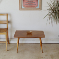 コンパクトながらも、ミッドセンチュリーらしいしっかりとした主張をもつこのテーブル。天板は遊び心のある木目の張り合わせで、明るいオーク材が味わいとなり、ビンテージらしい雰囲気たっぷりなアイテムです。小さいサイズの上軽量なので、手軽に移動できるから使い勝手が広がります。