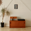 ベンチ部のブラックのカバーがチークの色味と相まって味わい深い印象。小さいけれど絵になる佇まいは、ディスプレイとしてもインテリアの名脇役として活躍してくれますよ!再入荷は未定の限定一台のみです。