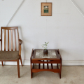 コンパクトな見た目とは裏腹に、なかなか重厚な造りのこちらのテーブル。カッチリとデザインされたミッドセンチュリーらしい脚と、癒し系タイル模様という組み合わせがなかなか珍しいです。