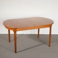 店長:「こちらはネイサンNATHAN製のヴィンテージ ダイニングテーブルです。チーク材の木目が本当に美しく、どこから見ても整ってますね。」